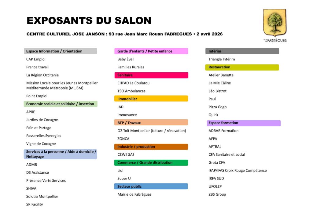 Renseignements : 04 67 85 55 26 et emploi@fabregues.fr